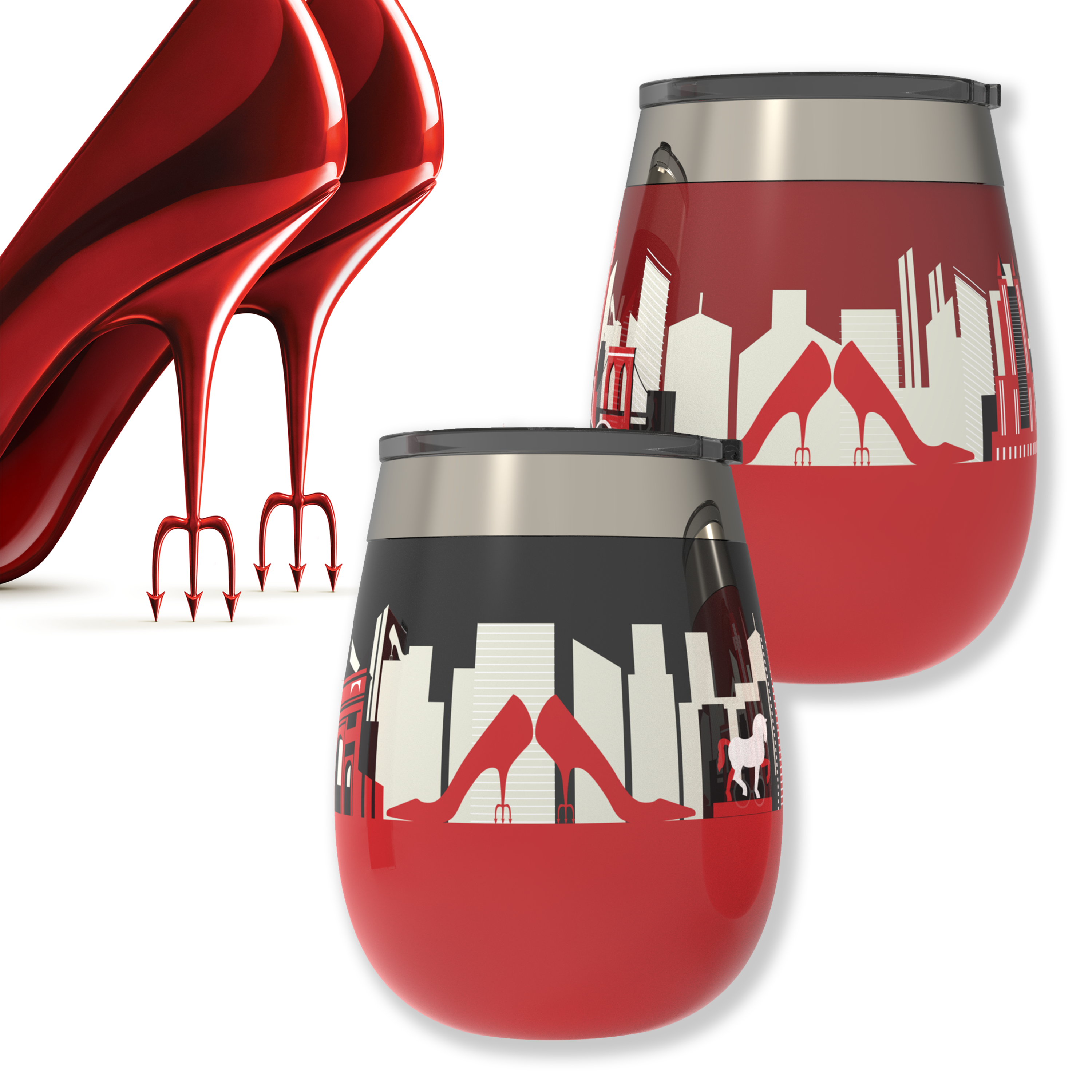 Toast to the return of Miranda Priestly with this elegant two-piece stainless steel wine tumbler set. One glass features the striking New York City skyline where it all began, while the other showcases the Milan skyline—because Paris is so last season. Both glasses are finished in sophisticated coral and silver tones with the film's logo.